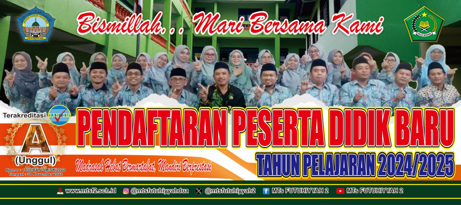 Informasi Pendaftaran Peserta Didik Baru Tahun Pelajaran 2024/2025 Madrasah Tsanawiyah Futuhiyyah 2 Mranggen Demak Jawa Tengah.